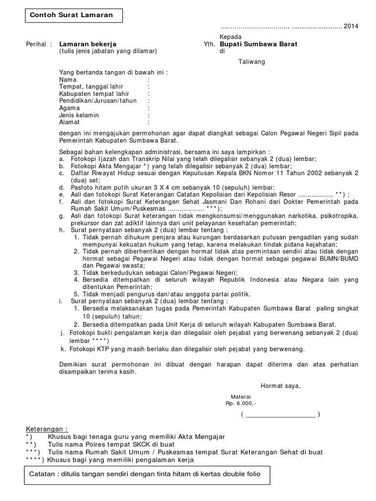 Contoh Surat Lamaran Cpns Kabupaten Klaten Format Word - Contoh Cara Membuat Surat Lamaran Kerja CPNS 2018 Beserta - Surat lamaran yang ditulis tangan dengan tinta hitam dan ditandatangani di .